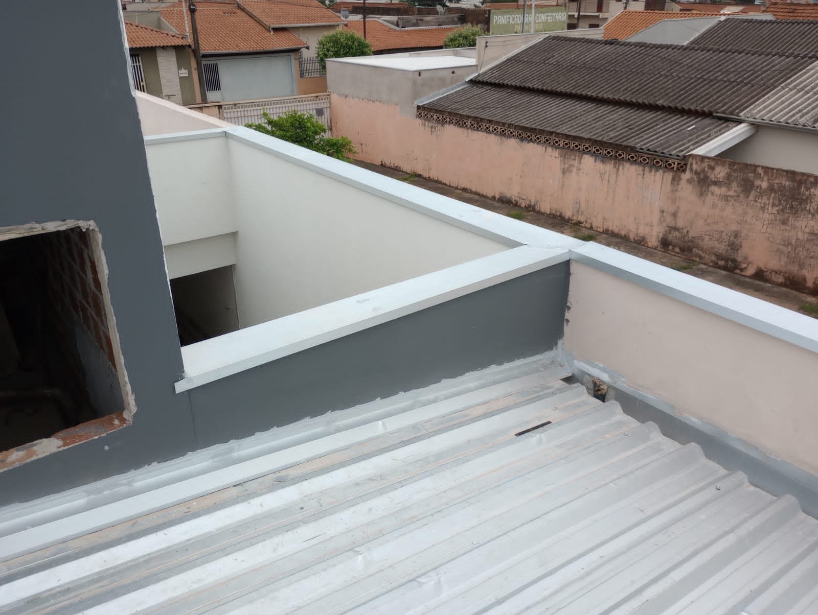 Os rufos fazem a vedação das paredes impedindo a infiltração de água pelas laterais e também o acabamento nas fachadas com platibandas e muros.
